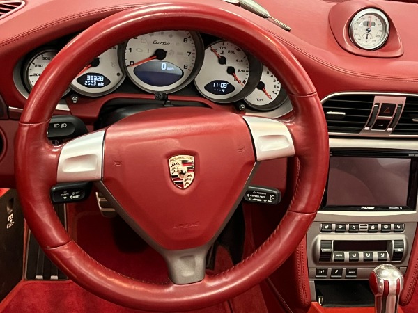 Beautifully equipped 2008 Porsche 911 Turbo Cabriolet in GT Silver Metallic with Carrera Red Leather interior. This car comes fully loaded with several options, including the Sports Chrono Turbo Package, heated front seats, leather sport seats, and Porsche crest on the headrests and storage compartment. Additionally, it includes two keys, owner?s manuals, the original window sticker, and an upgraded Pioneer radio with a backup camera and SiriusXM radio capabilities.